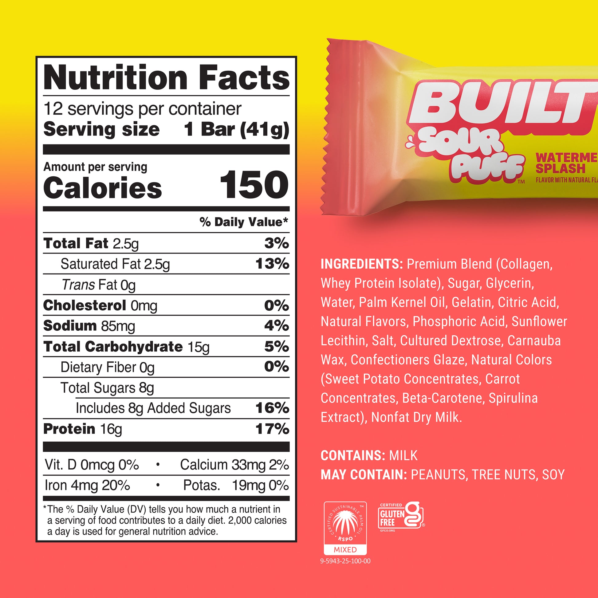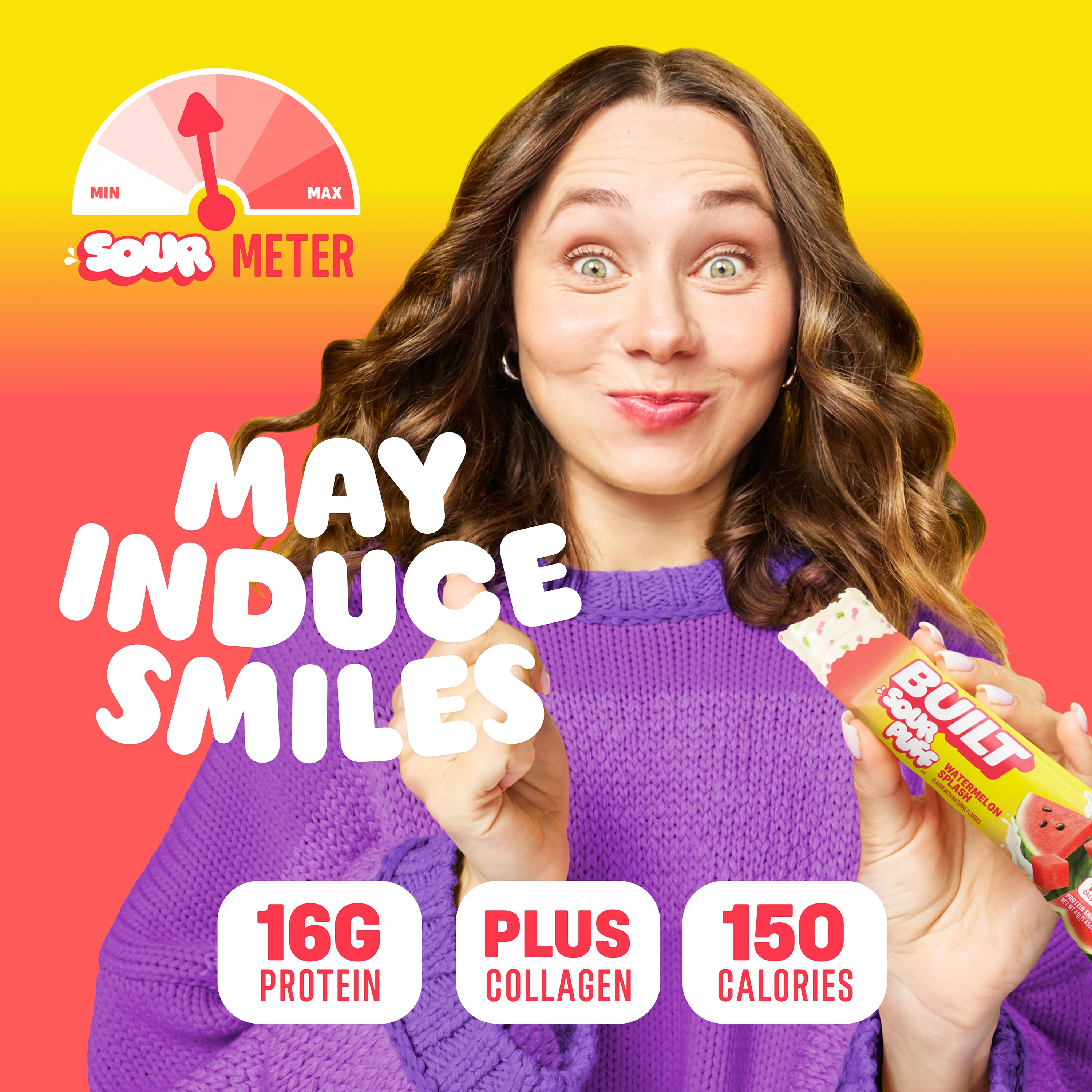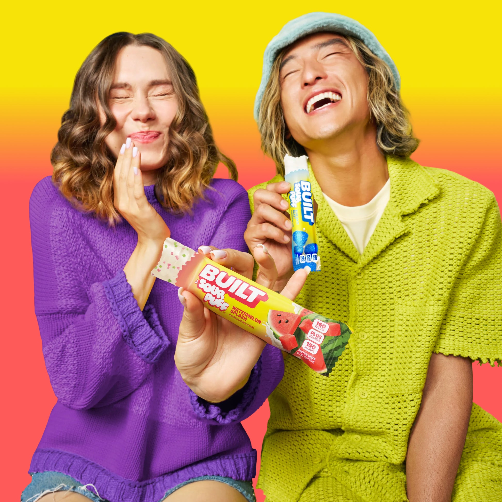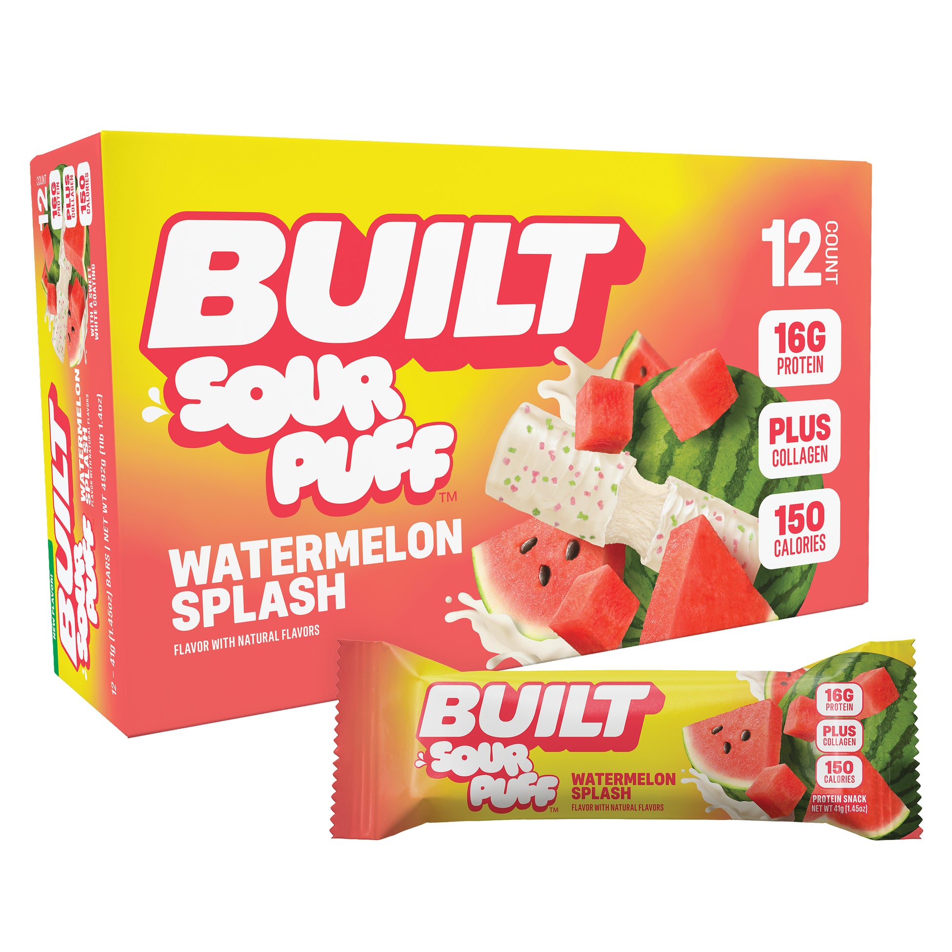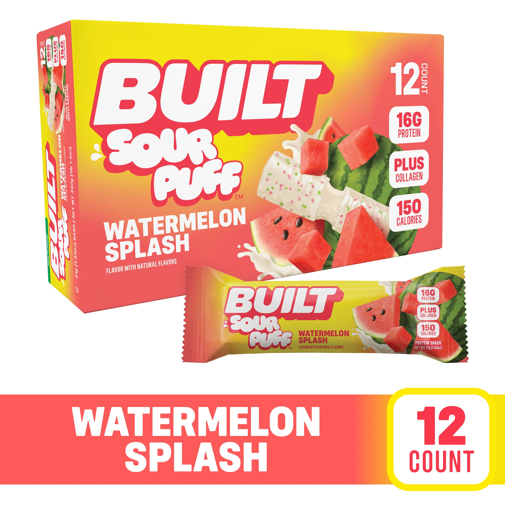 Introducing BUILT Sour Puff! The marshmallowy, protein-packed, goodness of BUILT Puff you know and love, with a tangy center -- a sweet and tart coating -- and topped with crunchy sugar sprinkles!
